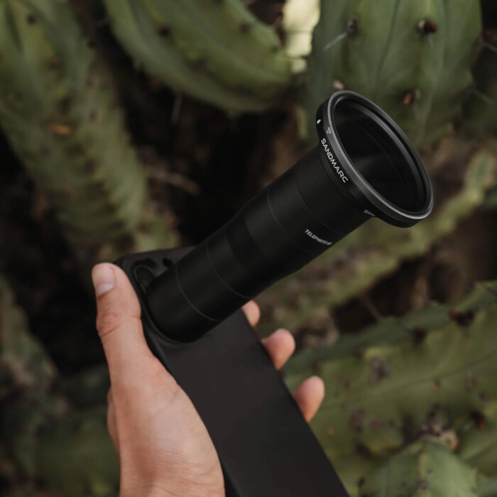 Teleobjektiv SANDMARC je vyroben z prvotřídního skla s vícenásobnou vrstvou a poskytuje 6x optické zvětšení. Obsahuje nejtenčí držák pouzdra na objektiv na světě.