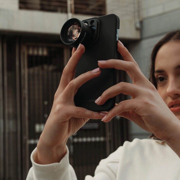 Teleobjektiv SANDMARC 58mm, vyrobený z prvotřídního skla s vícenásobnou vrstvou, poskytuje 2x optické zvětšení. Obsahuje nejtenčí pouzdro na objektivy na světě spolu s klipem, pokud chcete použít vlastní pouzdro nebo pouzdro vůbec nemáte.