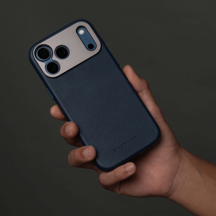Vyrobena z lícové kůže s patentovaným hliníkovým držákem, který poskytuje ochranu fotoaparátu a bezpečné připojení k objektivům a filtrům SANDMARC. Je vybavena kovovými tlačítky, nabíjením MagSafe a tlačítkem pro ovládání fotoaparátu.