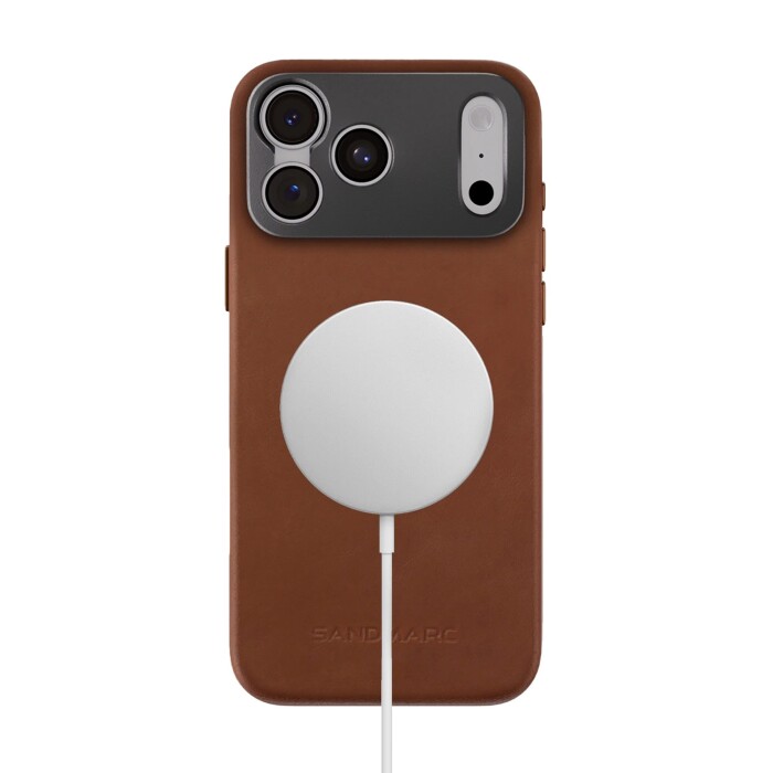 Vyrobena z lícové kůže s patentovaným hliníkovým držákem, který poskytuje ochranu fotoaparátu a bezpečné připojení k objektivům a filtrům SANDMARC. Je vybavena kovovými tlačítky, nabíjením MagSafe a tlačítkem pro ovládání fotoaparátu.