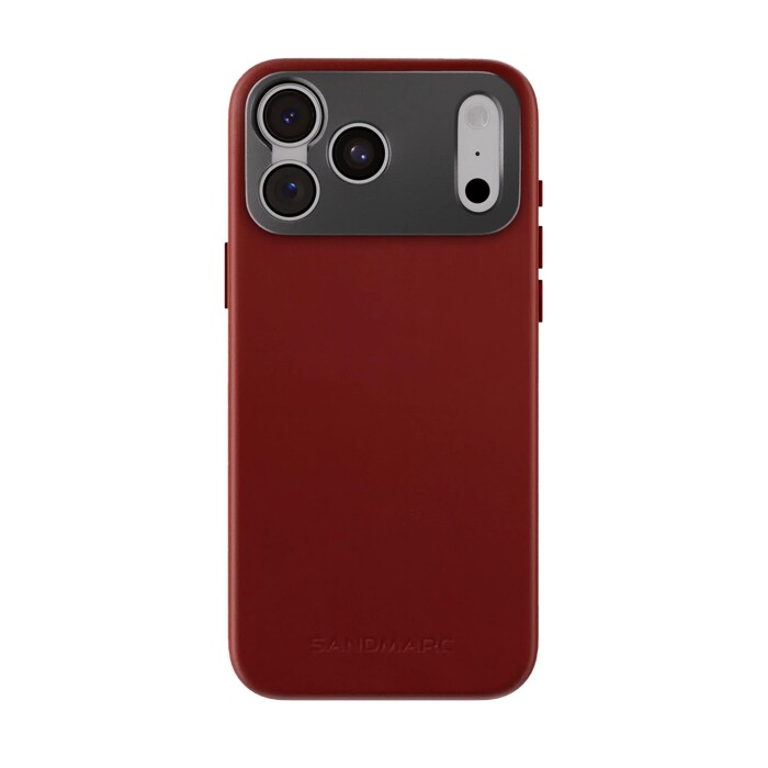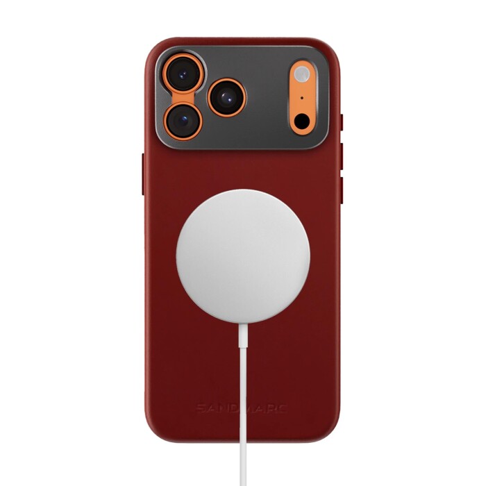Vyrobeno z lícové kůže s patentovaným hliníkovým držákem, který poskytuje ochranu fotoaparátu a bezpečné připojení k objektivům a filtrům SANDMARC. Je vybaveno kovovými knoflíky, nabíjením MagSafe a tlačítkem pro ovládání fotoaparátu.